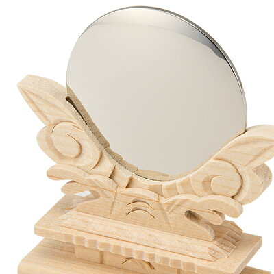 寸法:鏡径6cm×高さ10cm×巾9.5cm×奥行3cm材質:アンチモニー合金製ニッケルメッキ仕上げ(鋳造鏡) 木製(スプルス材)台付き生産地:日本製神鏡は神の依代となる鏡で、神棚(お宮)の扉の前に置きます。