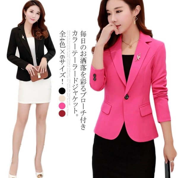 毎日のお洒落を彩るブローチ付きカラーテーラードジャケット。
