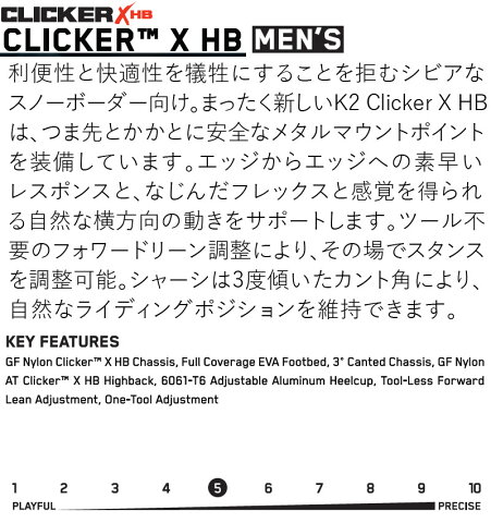 ベストマッチブーツ ・K2 CLICKER X HB ※上記のクリッカー専用ブーツが必要となりますので、ご注意ください。