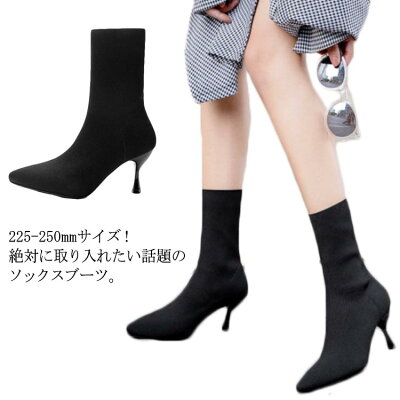 ピンヒール 6.5cmピンヒールで女っぽさミドル丈ソックスブーツ ミドルブーツ ショートブーツ ソックスブーツ ストレッチブーツ ブーツ レディース 伸縮性 美脚