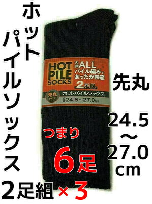 ホットパイルソックス HOT 紳士用 2足組×3個セット(6足) 24.5〜27cm 先丸 8501 WORKS HOMME ユニワールド 防寒靴下 厚手 暖かい【アソート 色指定不可】
