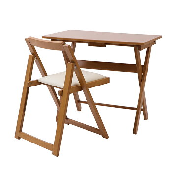 天然木の風合いがやさしい木製の折りたたみデスクと椅子のセットです。