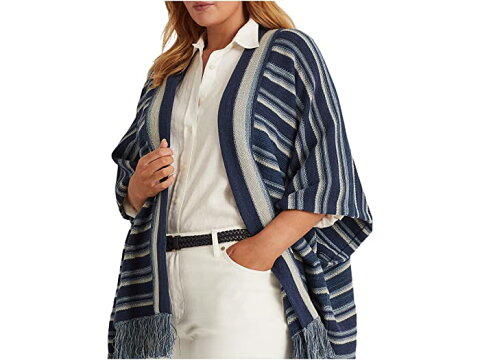 ■備考(取寄) ローレン ラルフローレン プラス サイズ ストライプド コットン フリンジ-トリム カーディガン LAUREN Ralph Lauren Plus Size Striped Cotton Fringe-Trim Cardigan French Navy Multiレディース セーター ウェア トップス 長袖 カジュアル ブランド 女性 大きいサイズ ビックサイズ zp-9799698