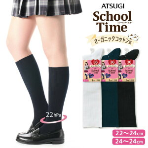 スクールソックス ATSUGI School Time オーガニックコットン混 着圧 36cm リブ編み LK79092 2足組 アツギ ソックス ジュニア 学生靴下 着圧 引き締め atsugi 綿混 まとめ買い 靴下 子供(05119)