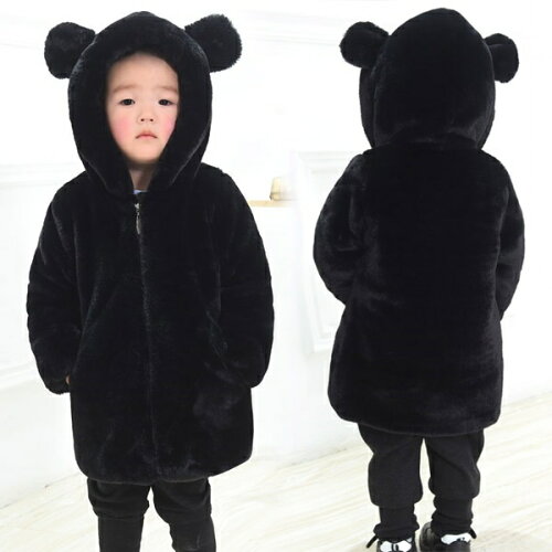 子供 ジャケット ボアブルゾン キッズ ボアパーカー フェイクファー フード付き 女の子 男の子 クマ耳 トップス 長袖 羽織 ライトアウター ジップアップ フード ボリューム 防寒 アウター もこもこ 秋冬 ロング モコモコ ブラック dt096x1x1x1