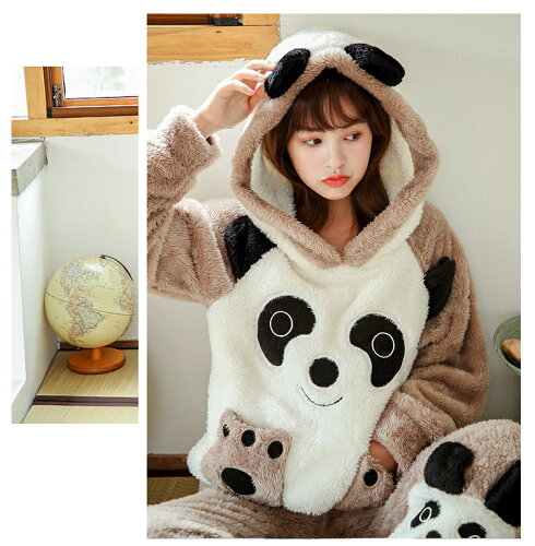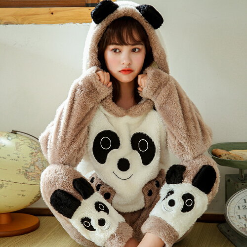レディース ルームウェア 上下セット クマ耳 熊柄 クマ柄 くま耳 パーカー&ズボン 長袖パジャマ ふわふわ もこもこ 寝巻き 部屋着 ブラウン グレー あったか 暖かい 防寒 可愛い プレゼント ギフト 贈り物 大きいサイズ