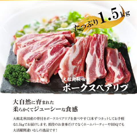 名称 大館北秋田産豚骨付きスペアリブお手軽1.5kgパック 申込条件 何度も申し込み可 産地 秋田県大館市 内容量 骨付き豚バラ肉1.5kg(カット6〜8本) 消費期限 発送から60日(解凍後3日) 申込期日 通年 発送期日 入金確認後、1ヶ月以内に発送 【配送休止】5/4〜5/7,8/13〜8/15,1/1〜1/7 発送方法 冷凍 提供 (株)割烹きらく 特徴 大館北秋田産の骨付きポークスペアリブを食べやすく1本ずつカットしてお手軽な1.5kgでお届けします。